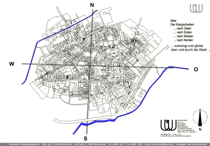 Der Kirchturm wird gestaltet von seinem Klangschatten, der nach allen vier Himmelsrichtungen über die Stadt Westerstede erklingt.